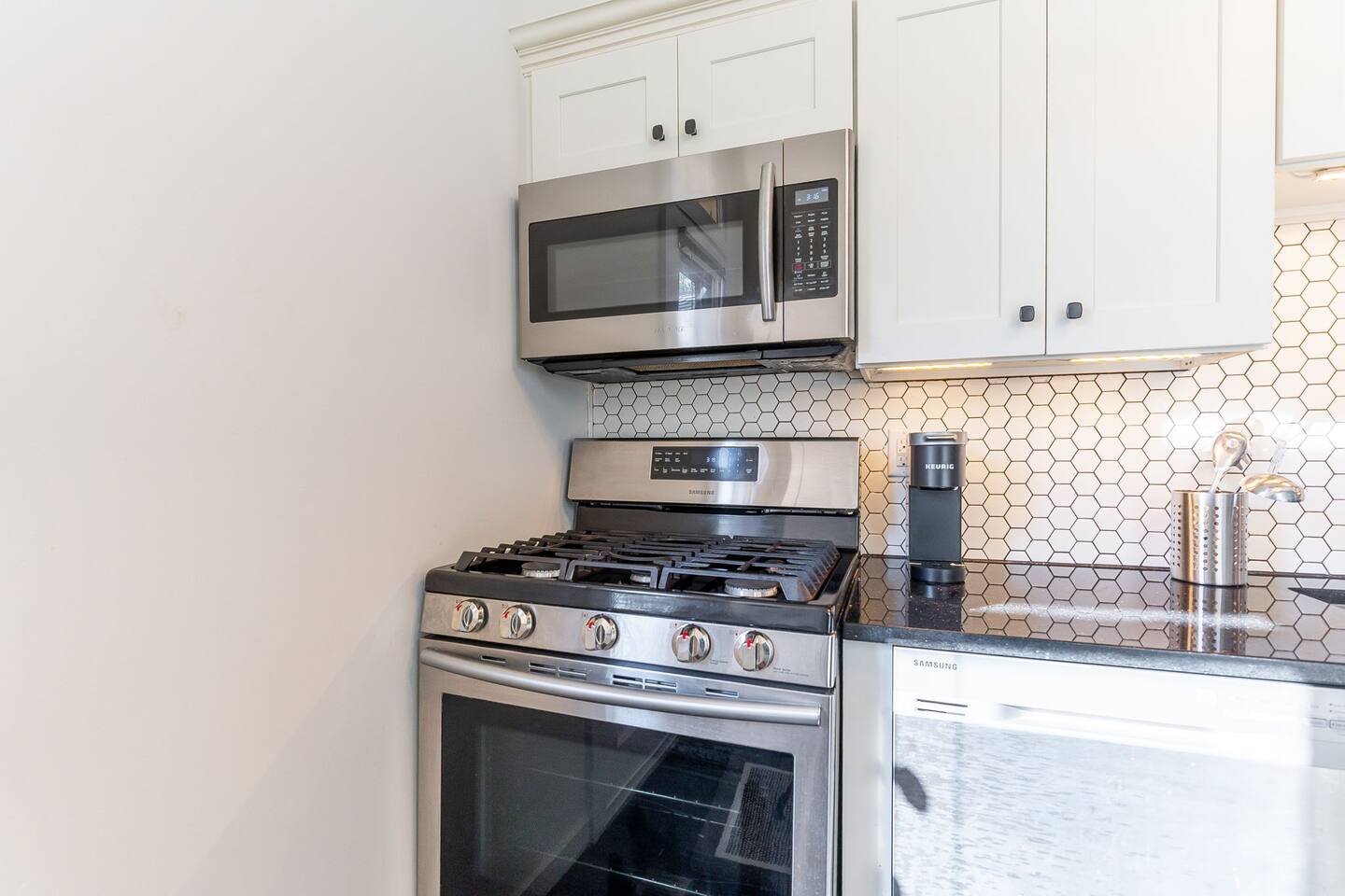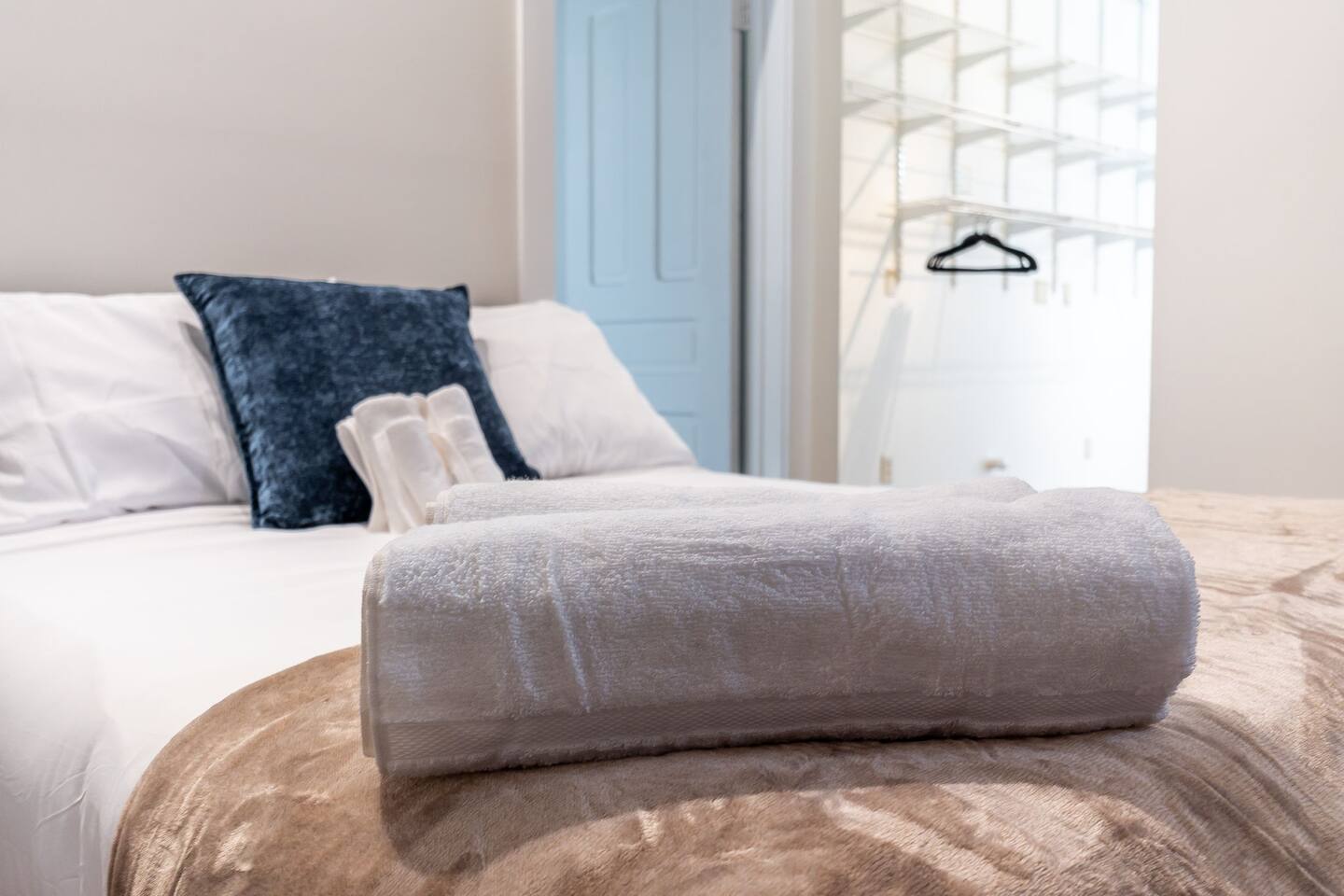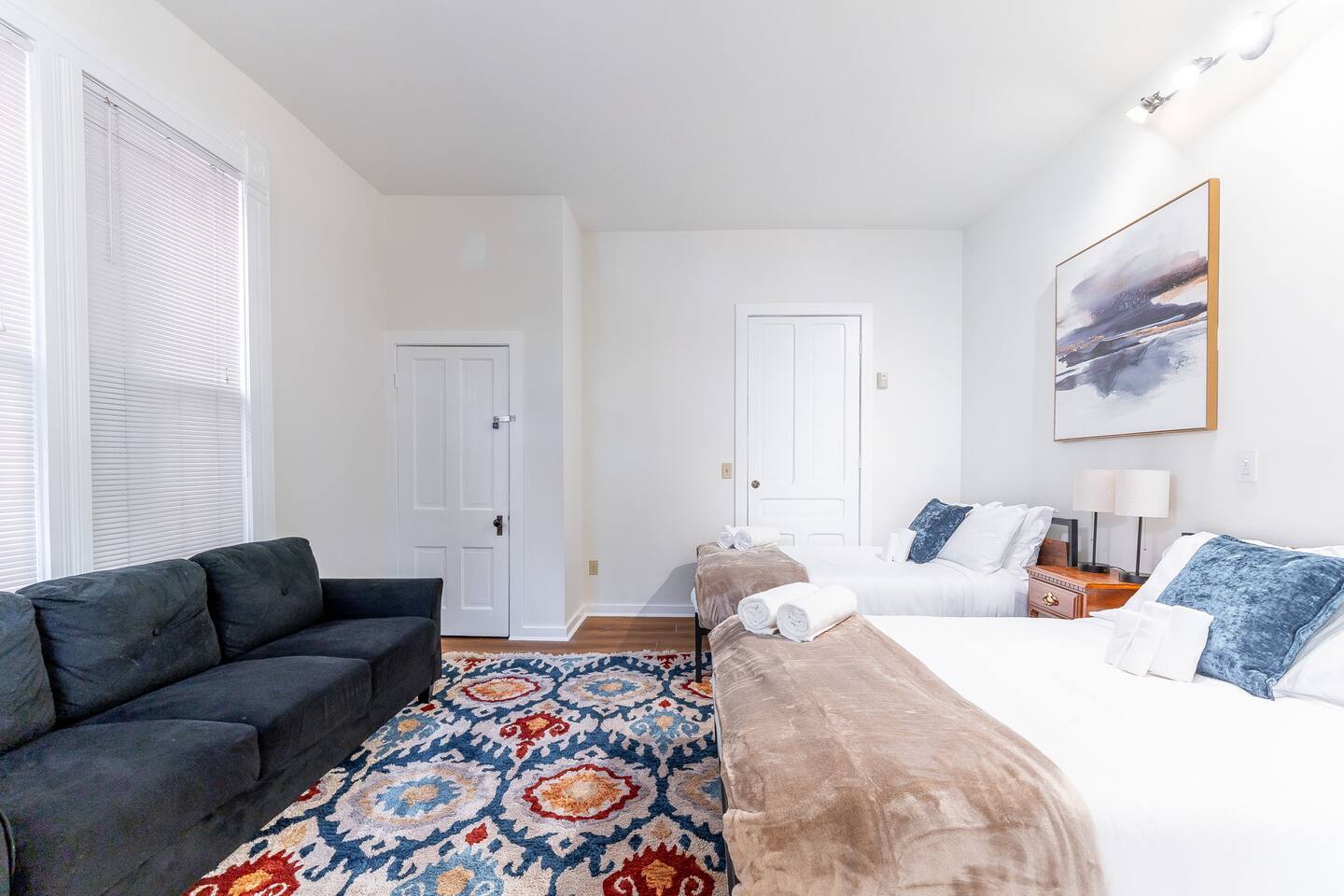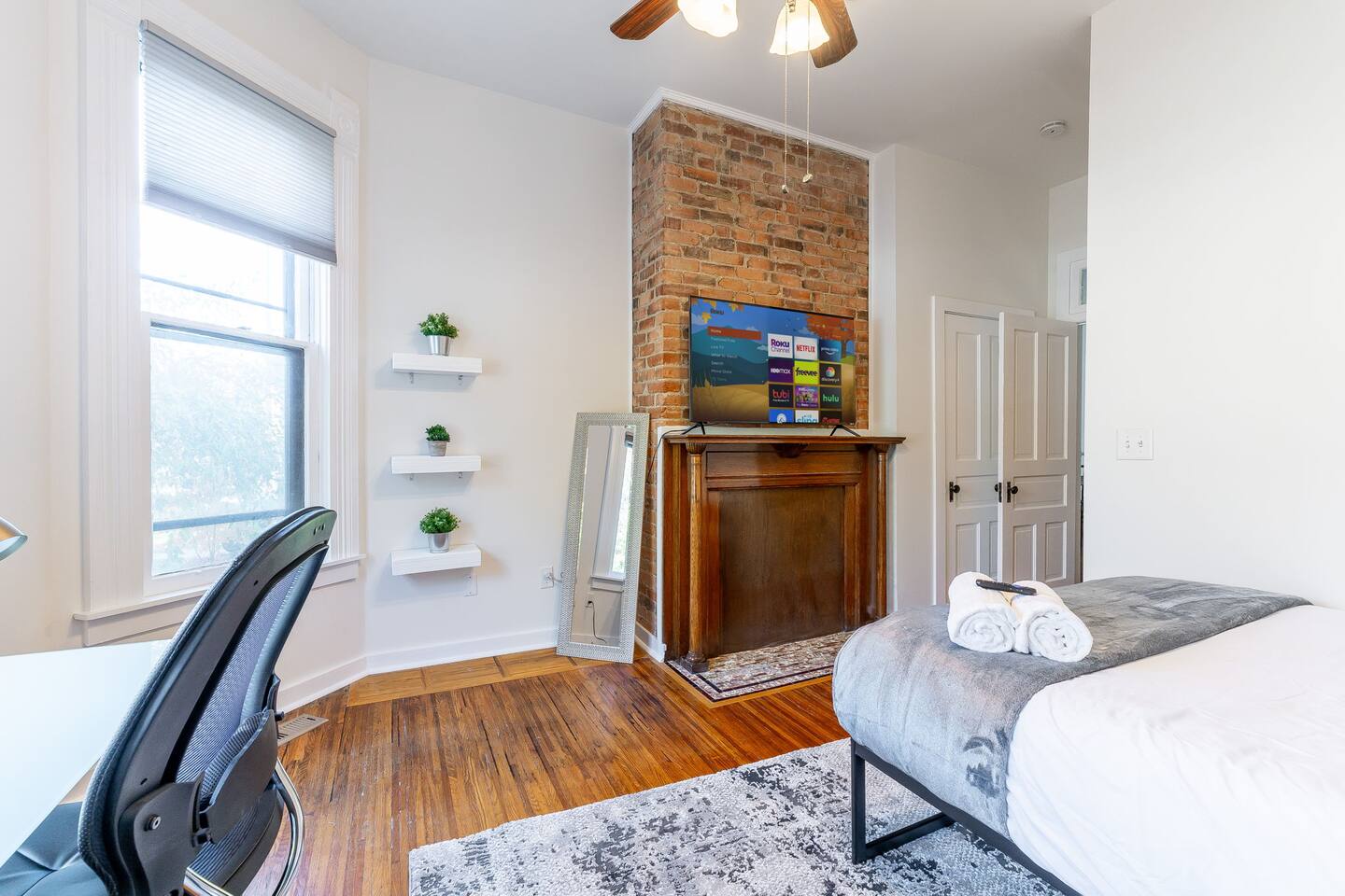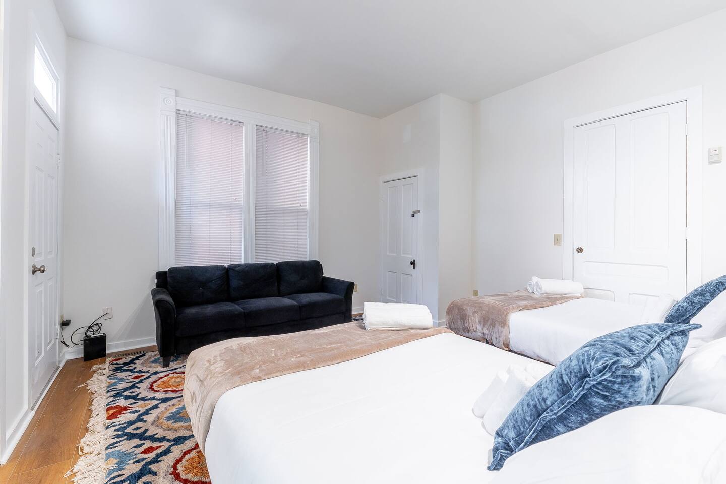This modern cozy getaway will leave you in awe with its carefully picked amenity list spread over one inviting SPACIOUS story. You will have unit B all to yourself ! ~LIVING ROOM~ It is nestled overlooking the beautiful brick avenue. Open and ideal for relaxing and enjoying the company of friends and family while watching a good movie, or show ~HIGH CEILING ~Comfortable Sofa with Pillows ~ 58" 4k HD SmartTV ~Coffee Table ~KITCHEN & DINING~ Kitchen with numerous cooking appliances and spacious granite countertops giving you plenty of space to cook! ~Microwave ~Oven ~Stove ~Toaster ~Fridge/Freezer ~Coffee Machine ~Dishwasher ~Pots & Pans ~Drinkware ~Filtered Water ~BEDROOMS~ Cozy 2 Bedrooms with a Queen bedroom / private workspace, another room with two full beds. Both rooms equipped with two full baths! -Air mattress upon request ~BATHROOMS~ The condo features two full bathrooms stocked with all necessities. ~Bath and Shower ~Mirror ~Toilet ~Towels ~Essential Toiletries